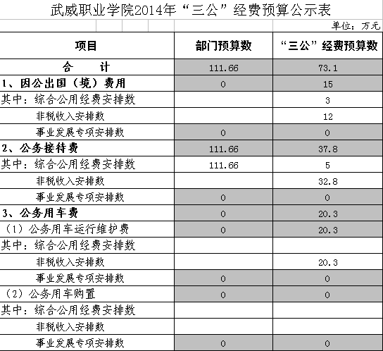 武威職業(yè)學院2014年“三公”經費預算公示表