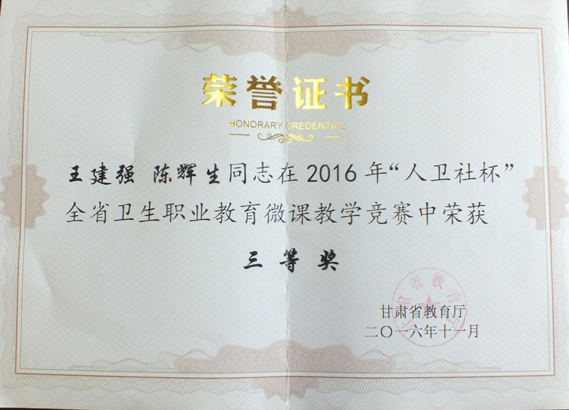 我院教師在2016年“人衛(wèi)社杯”全省衛(wèi)生職業(yè)教育微課教學(xué)競賽中獲獎(jiǎng)