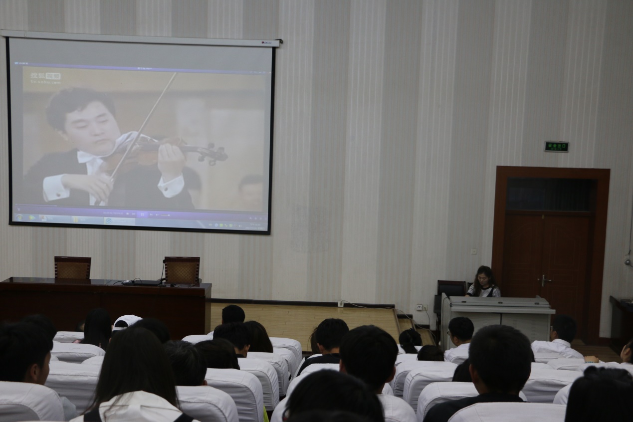 伴著優(yōu)美的音樂旋律王敏副教授開始了講座,王老師首先介紹了音樂發(fā)展歷史和音樂鑒賞的基礎(chǔ)知識(shí),然后以我國(guó)著名作曲家陳鋼、何占豪先生創(chuàng)作的小提琴協(xié)奏曲《梁山伯與祝英臺(tái)》為題材,分階段講述了“鳥語花香”、“草橋結(jié)拜”、“英臺(tái)抗婚”、“投墳化蝶”等內(nèi)容和藝術(shù)場(chǎng)景。剖析了作品在管樂、和以小提琴、大提琴為主的弦樂及民樂有機(jī)結(jié)合的高超藝術(shù)境界,講座過程中王老師結(jié)合《梁?!穮f(xié)奏曲音視頻資料,演繹了梁山伯與祝英臺(tái)凄美的愛情故事。