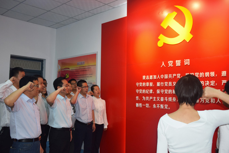 “我志愿加入中國(guó)共產(chǎn)黨,擁護(hù)黨的綱領(lǐng),遵守黨的章程……” 全體黨員同志在任陶的帶領(lǐng)下,鄭重地舉起右手,面對(duì)鮮紅的黨旗再次莊嚴(yán)宣誓。誓詞擲地有聲,鏗鏘有力,讓全院黨員同志得到了一次思想洗禮,一次精神激勵(lì)。任陶指出,重溫入黨誓詞,是“兩學(xué)一做”學(xué)習(xí)教育的重要內(nèi)容,是黨性的再熏陶、再教育,目的在于立起黨員的標(biāo)桿來,喚起“入黨為什么”“在黨干什么”的重新思考。