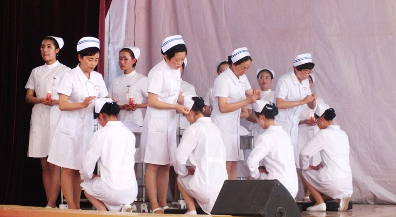 為繼承和弘揚(yáng)南丁格爾精神,積極推動(dòng)護(hù)理專業(yè)人才建設(shè)和職業(yè)內(nèi)涵塑造,展示我院護(hù)理專業(yè)師生風(fēng)采,在第106個(gè)國(guó)際護(hù)士節(jié)來(lái)臨之際,學(xué)院于5月12日下午在大禮堂隆重舉辦了慶祝國(guó)際護(hù)士節(jié)活動(dòng),武威市衛(wèi)生計(jì)生委副主任潘玉華、學(xué)院黨委副書(shū)記趙明、紀(jì)委書(shū)記張富國(guó)、副院長(zhǎng)王永緒、直屬附屬醫(yī)院護(hù)理部主任、相關(guān)處室領(lǐng)導(dǎo)及護(hù)理系全體師生1200余人參與了本次活動(dòng)?;顒?dòng)包括護(hù)士授帽儀式,護(hù)理實(shí)踐技能操作表演,第四屆護(hù)理技能大賽頒獎(jiǎng),慶祝“5.12”護(hù)士節(jié)文藝演出等內(nèi)容。