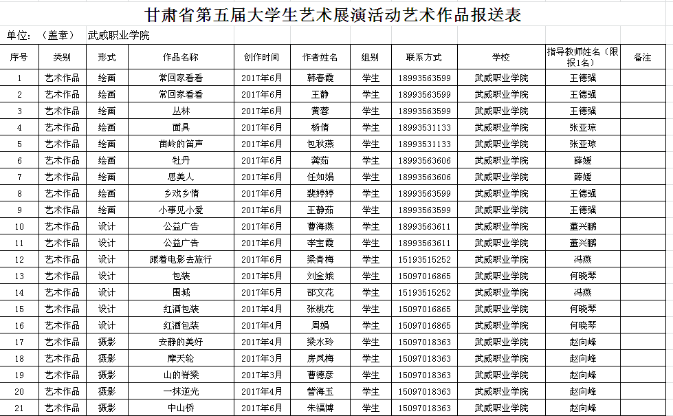 - 下一篇:人文藝術(shù)教育系教師在首屆甘肅省中等職業(yè)學(xué)校藝術(shù)教育學(xué)科微課比賽中喜獲…[ 06-22 ]