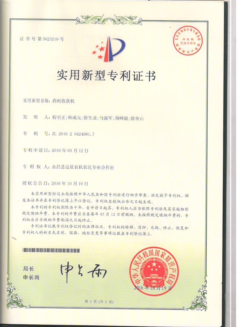 科研成果---實(shí)用新型專(zhuān)利:藥材收貨機(jī)
