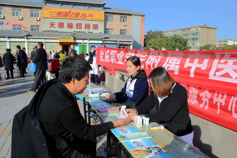 11 月1日,為配合2017年甘肅衛(wèi)生計生題材劇目秦腔《皇甫謐》在武威成功上演,根據(jù)市衛(wèi)生計生委安排,直屬附屬醫(yī)院派出醫(yī)生李生海、護士許海燕等醫(yī)務(wù)人員組成的醫(yī)療小分隊,與其他10余家醫(yī)療衛(wèi)生單位的醫(yī)務(wù)人員一道,在武威南城門廣場開展便民義診服務(wù)活動。
